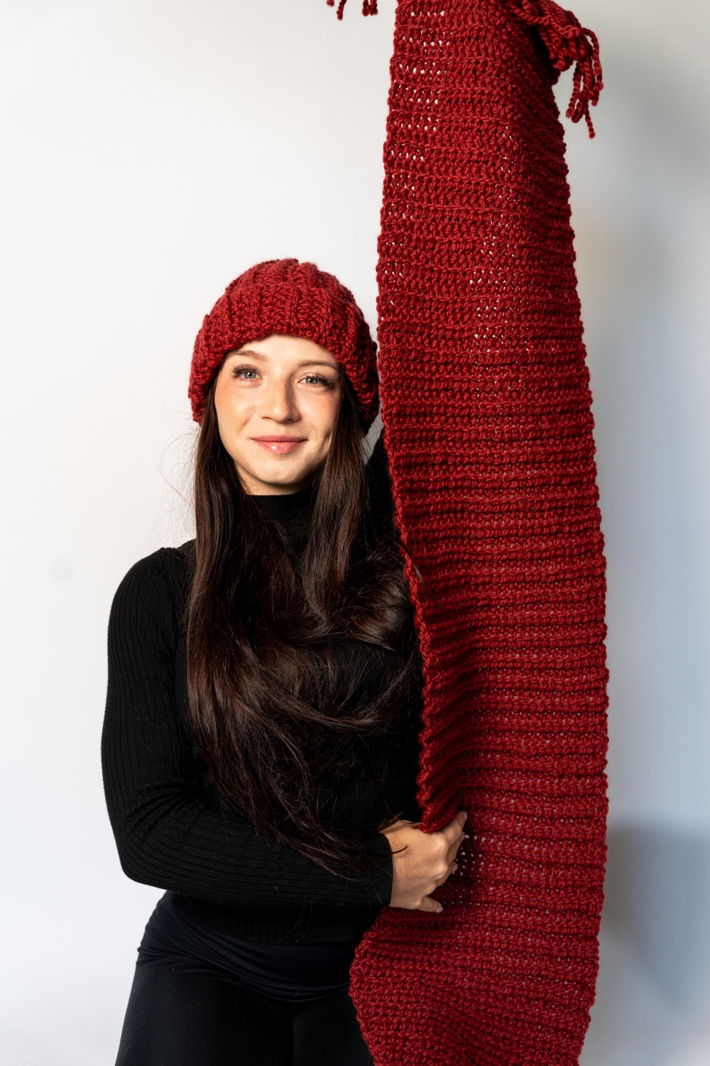 Szalik wykonany w takim samym ściegu jak czapka Luna – razem tworzą perfekcyjny komplet na zimę.