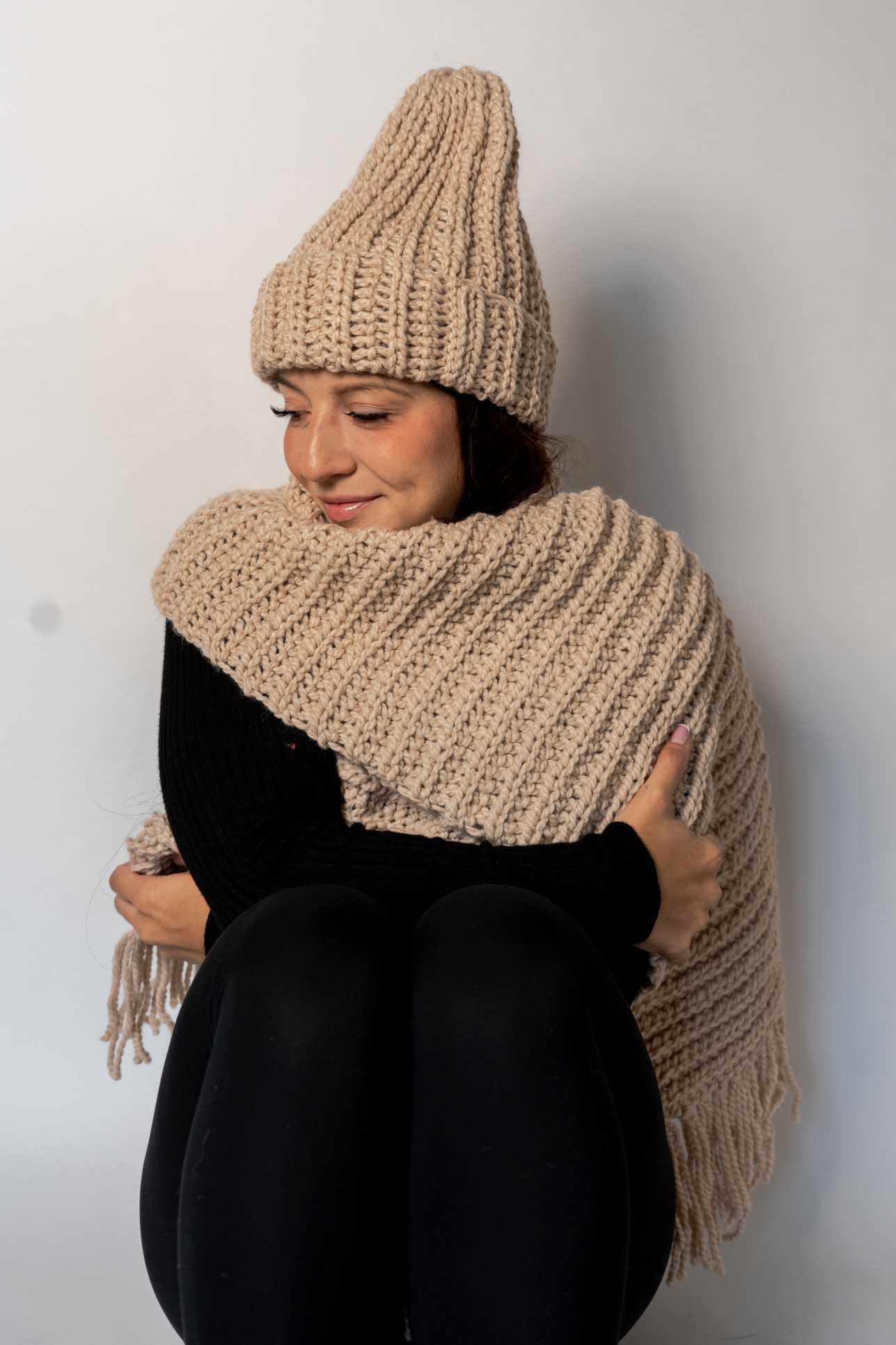 Odkryj wyjątkowy duet czapki Luna i szalika Aura (160 cm długości), który łączy w sobie naturalne ciepło, ręczną precyzję i ponadczasową elegancję. To nie tylko zimowy zestaw, ale manifest świadomego stylu – stworzonego z miłości do natury, włosów i wyjątkowego komfortu.